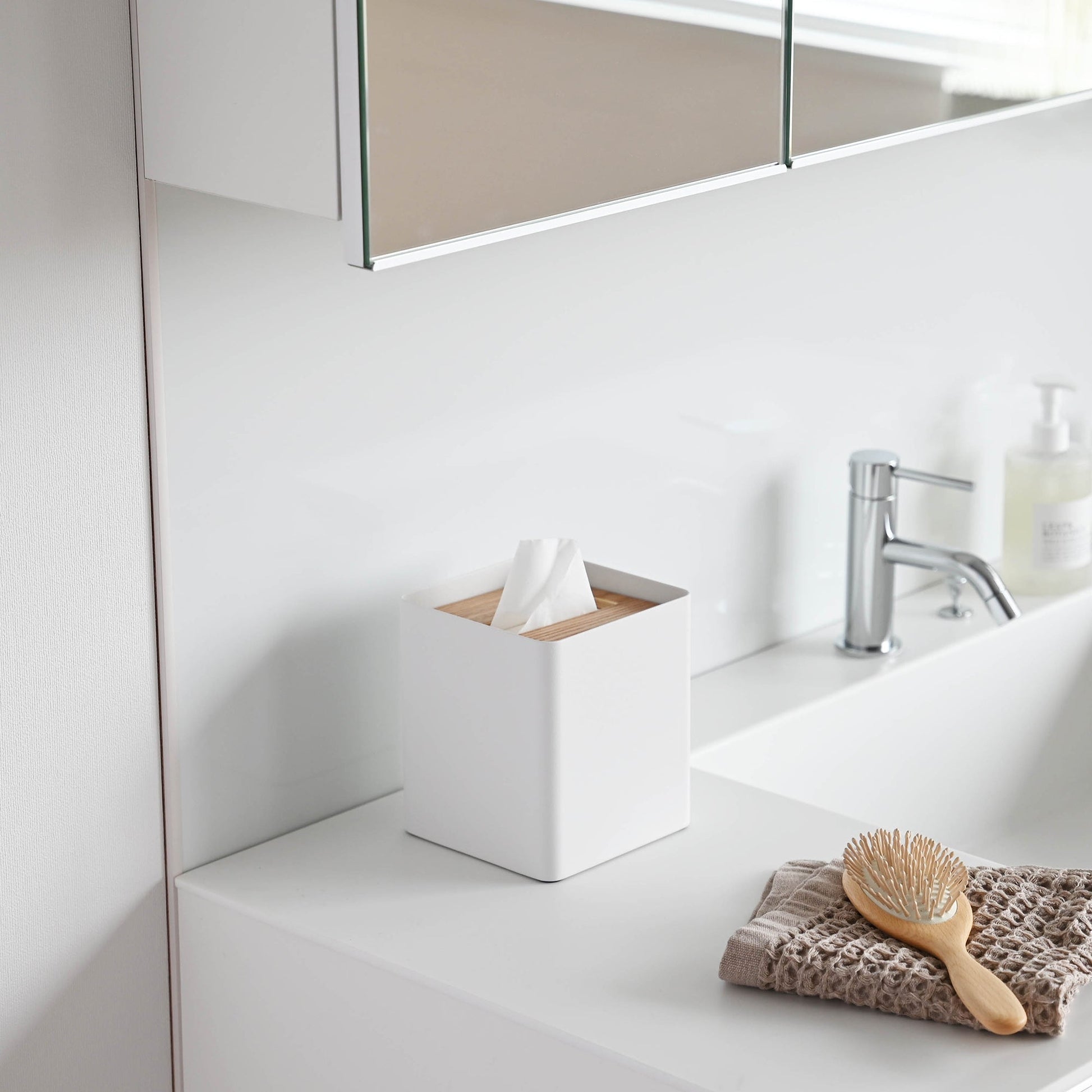 Sneezes and sniffles have never been so stylish. Loudly branded tissue boxes scattered throughout your home? No thanks! Restore your fengshui and keep tissues covered but accessible with these handsome lidded boxes. Insert half-size tissues, box and all, and cover with the elegant wooden lid to hold in place. Redesigned to fit standard U.S. tissue boxes! Simply place a standard square tissue box inside and thread the first tissue through the wooden top to start working on those sniffles. (Tissues not included!) *The lid was redesigned in October 2022 to feature a wider opening than is pictured in the provided imagery. This was done to make dispensing easier.