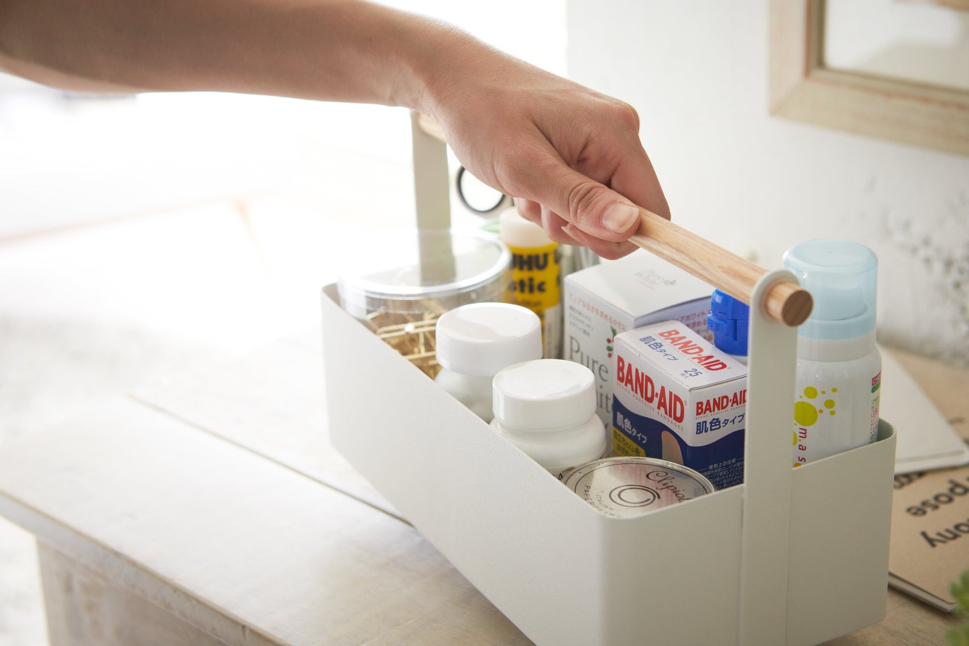The caddy-lac of countertop organizers. Beautiful storage organizers that will have you admiring your countertops. These multipurpose steel totes with wooden handles are excellent ways to declutter and store smaller items around the home. Stylish enough to leave on your countertops and small enough to tuck away into cupboards.
