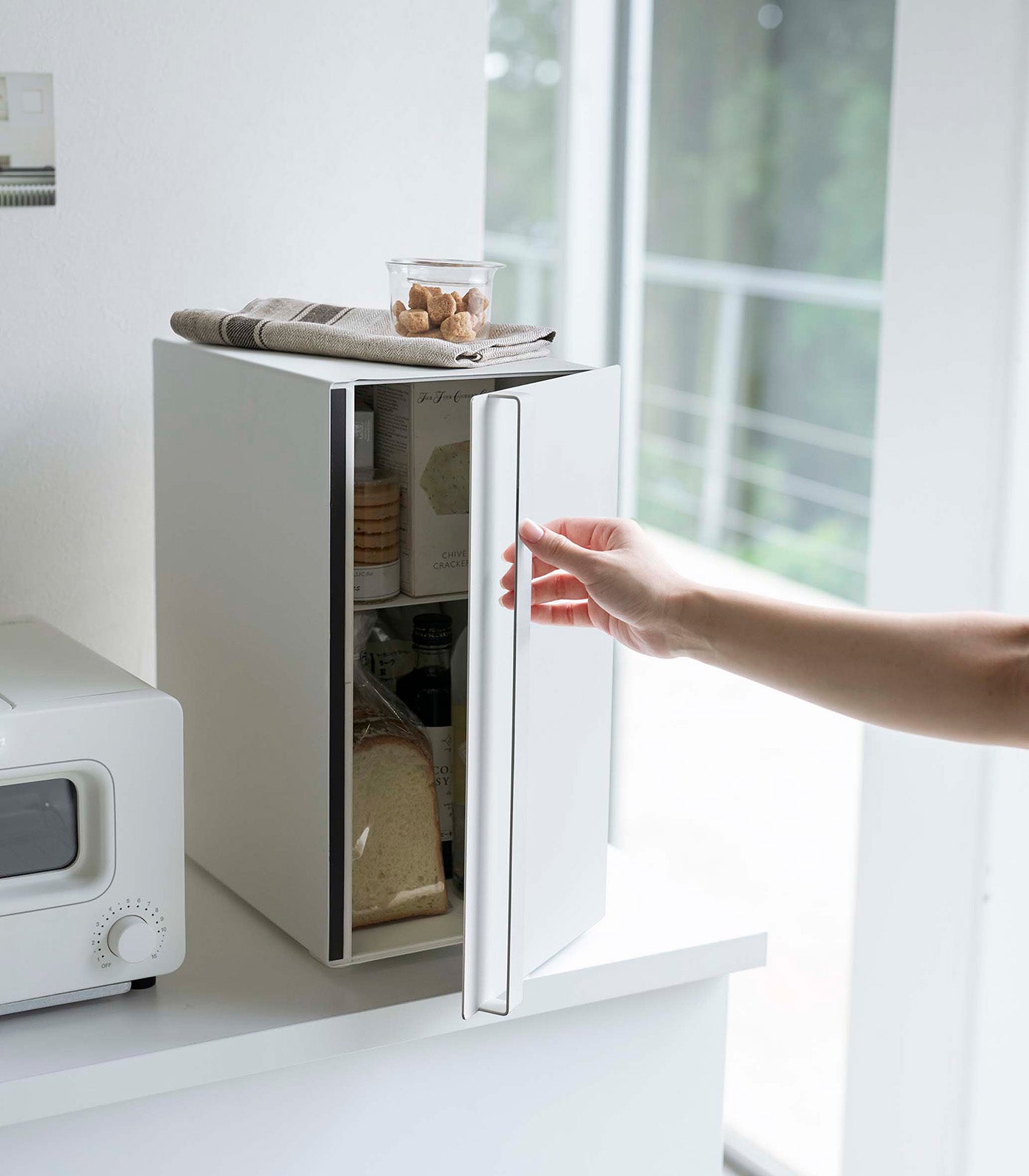 Keep your homemade buns and brioches fresh as the day you baked them. Bread-makers, rejoice! These elegant, modern bread boxes safely store your favorite breads as well as jams and jellies for quick and easy snack action. What’s more, the steel boxes are designed to provide optimal airflow to keep your loaves and pastries fresh and scrumptious. Available in Horizontal Version: Our original bread box, this is a spacious design that also offers additional storage opportunity on top. Discover more of our bread boxes and inspiration here!