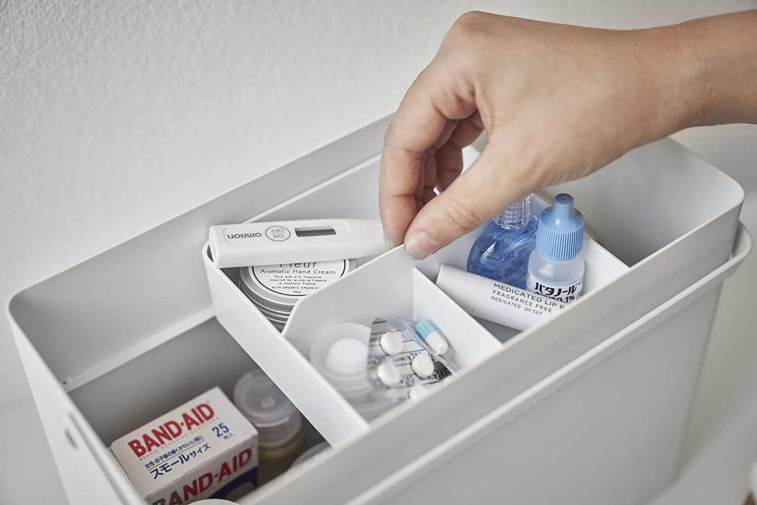 Sew up your order before it’s too late. Created with home first-aid kits in mind, this compact, all-purpose storage organizer is perfect for storing odds and ends, whether they be sewing accessories, bathroom products, makeup or more. The nested tray that rests in the upper compartment and wooden lid are the little touches that make this accessory box extra special.