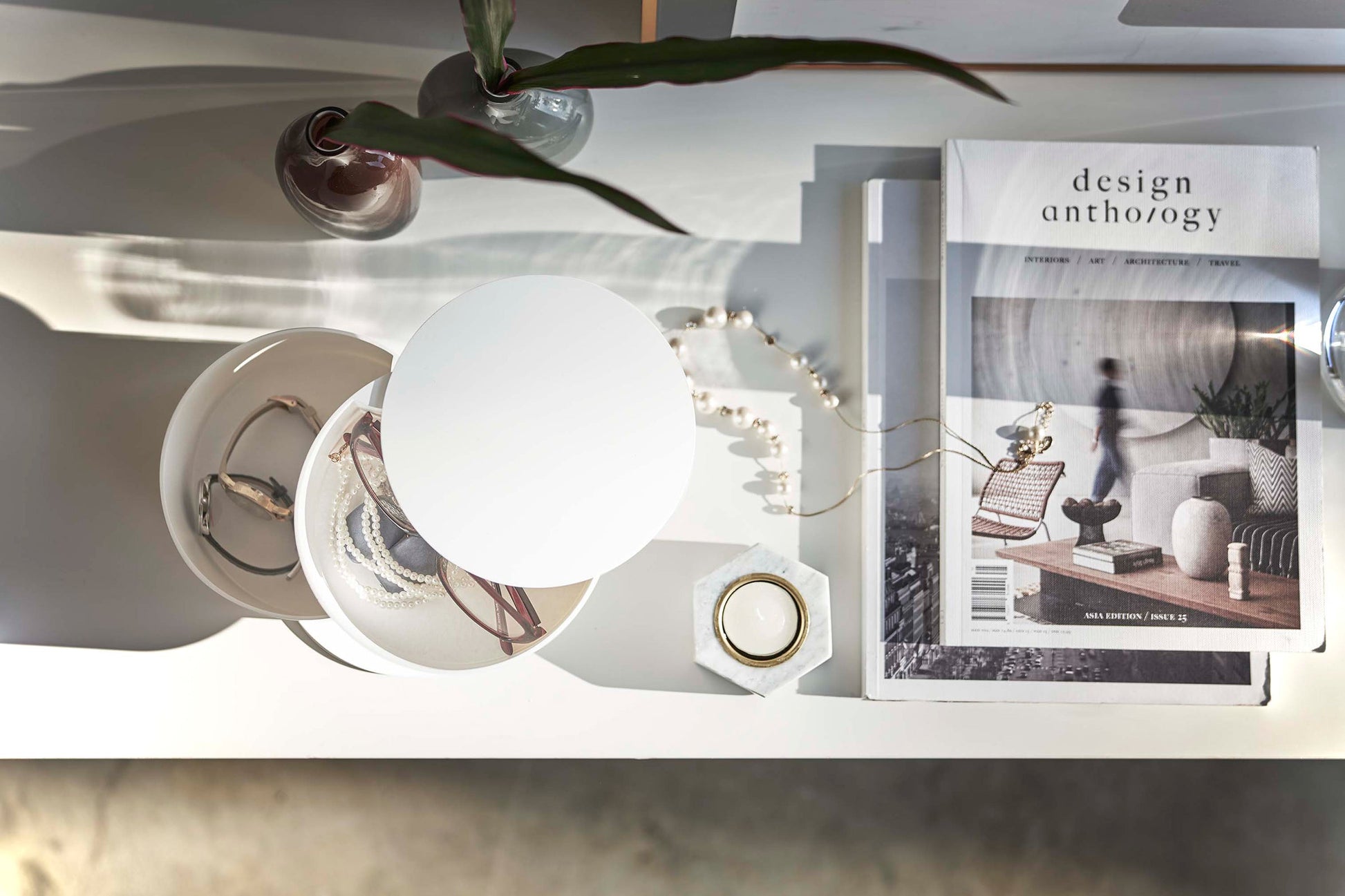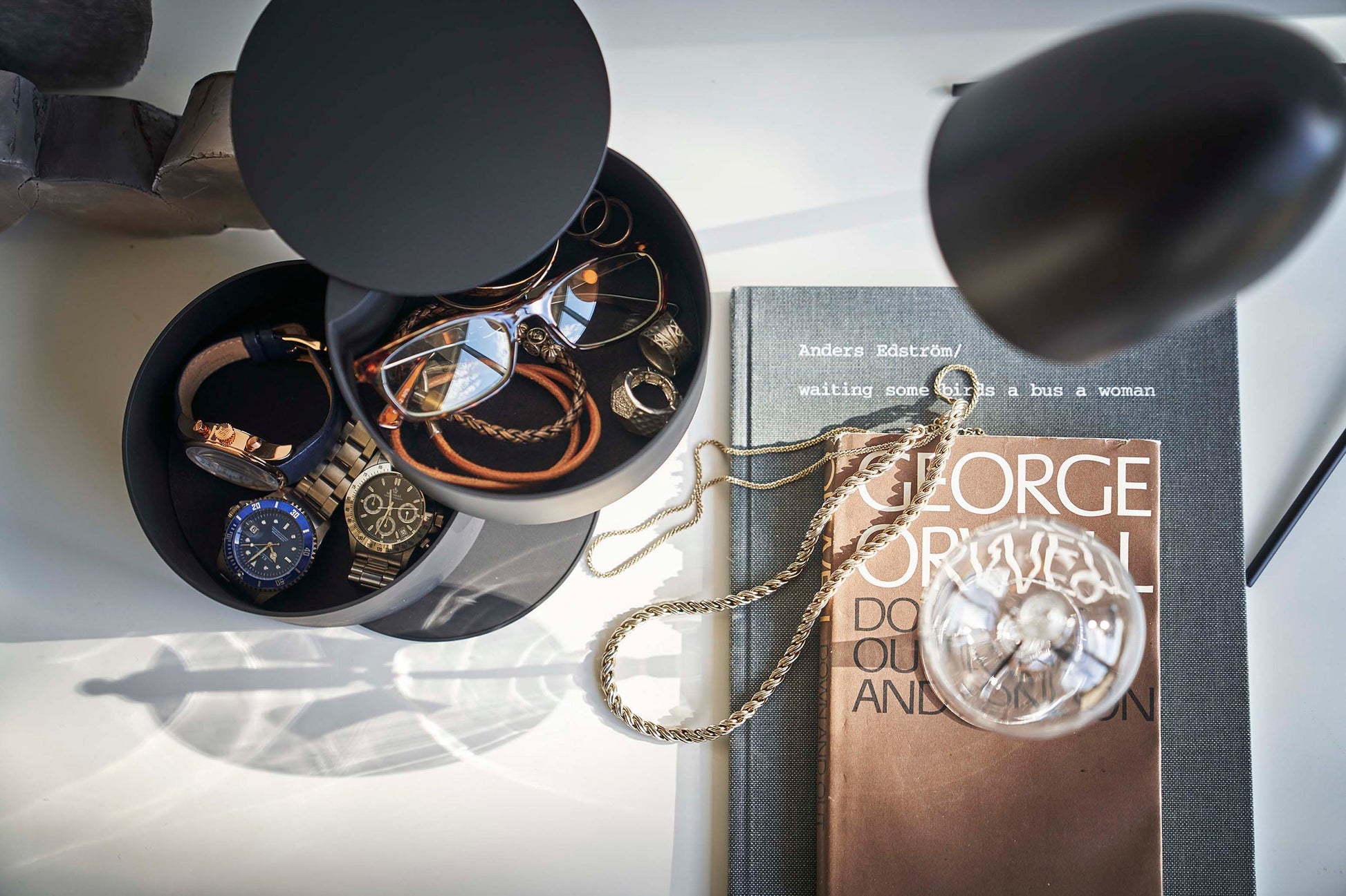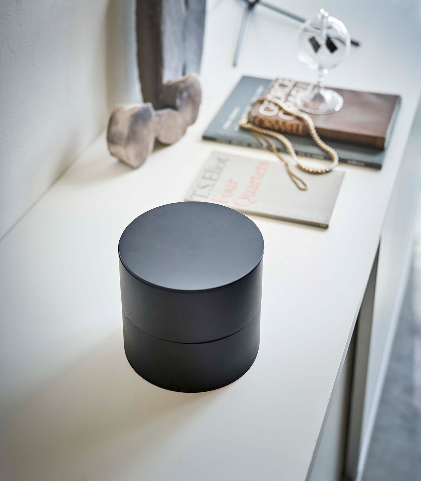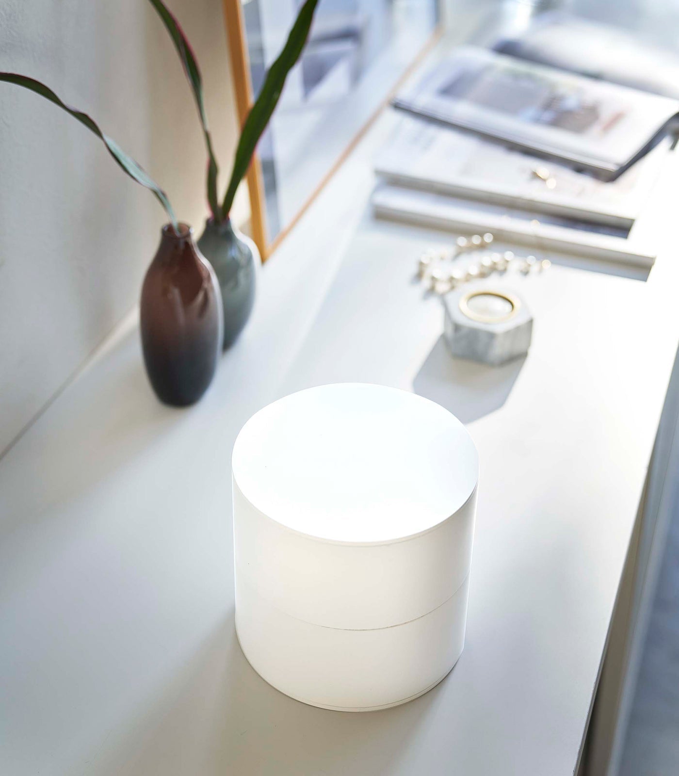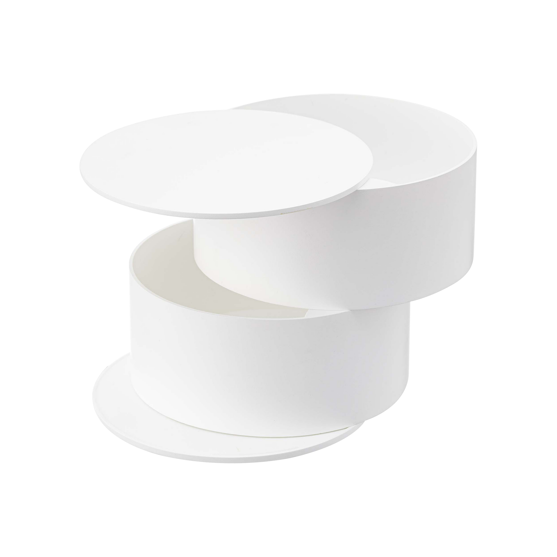 Swivel into style. With a twist and a turn, store all of your beloved accessories and trinkets in one chic holder. Let your baubles shimmer, sparkle, and shine in this two-tiered organizer. The trays are wider and deeper than our multi-tiered versions, allowing more room for larger jewelry pieces, or just more of your best gems.