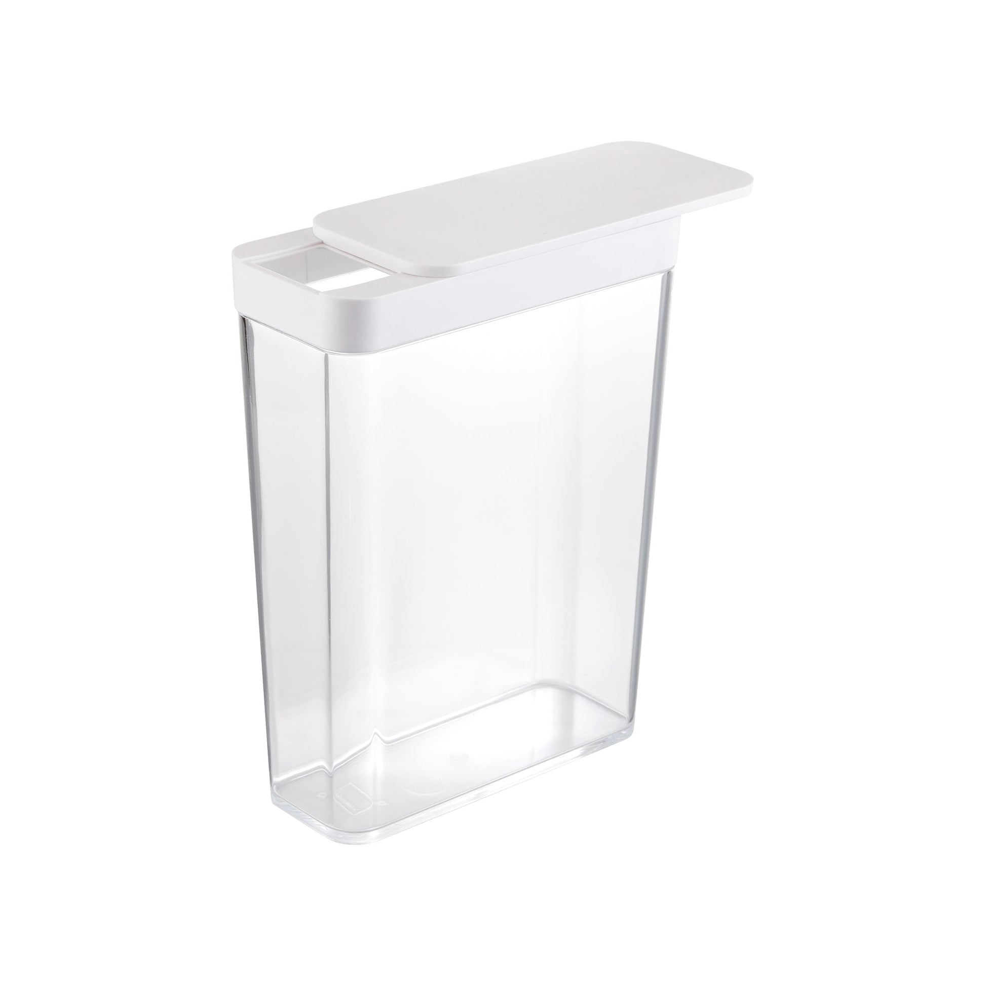 It’s time to get cereal. Or, any other kind of grain for that matter. This clear food container is a blessing to any pantry. Tall and thin, they take up minimal space and pack in together nicely. Perfect for lining up cereals, grains, flours, and other dry foods. Time to have some fun with the label maker. Remember to slide, not pop the top.