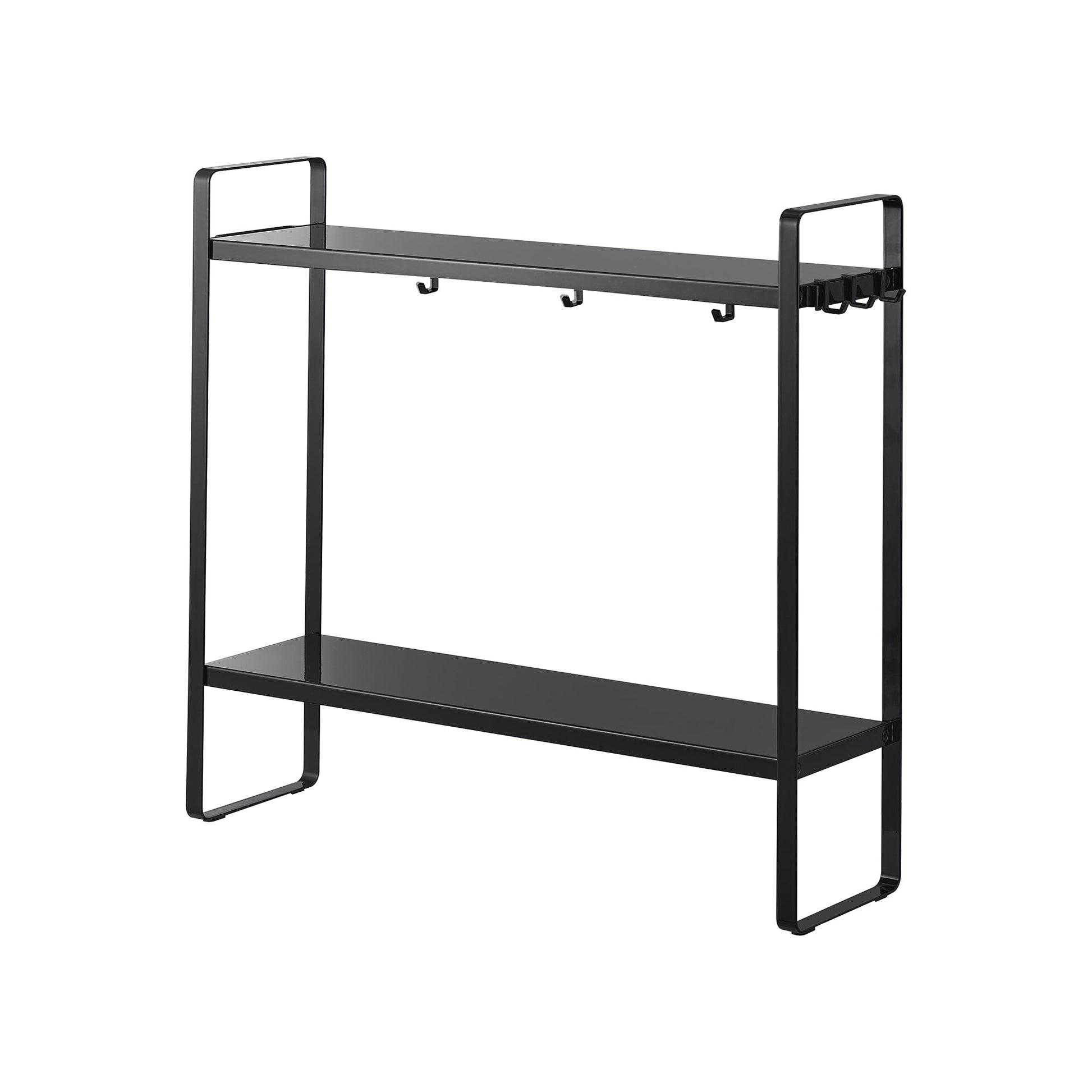 Keep the kitchen gadgets at your fingertips. Store your favorite kitchen tools and seasoning within arm’s reach so you never miss a beat while cooking meals. This slim countertop storage solution can fit nicely by your kitchen stove or sink without occupying much space. Complete with adjustable hooks for hanging storage and an elevated bottom shelf for easy cleaning as well as additional storage underneath.